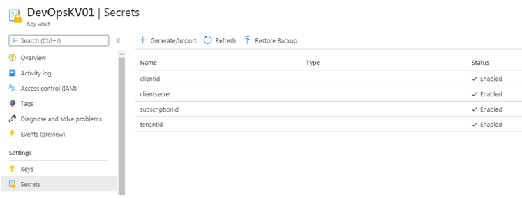 We have created an Azure Key Vault, and stored following secrets :