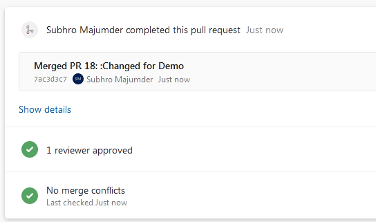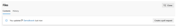 First, we will push our updated code through git to a child branch DemoBranch. This new branch will be created when we push our code.
