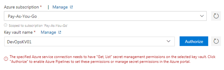 Once you click Authorize, it will add appropriate access policy to the Key Vault to get and list secrets.