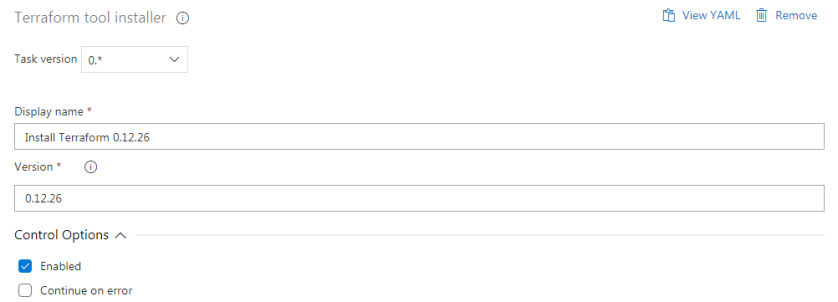 Install Terraform is not a mandatory task, as we can also install terraform while running Terraform init task. However, this task will allow us to specify a particular version which would be installed in the release pipeline agent system.