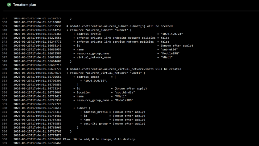 Once you click on the Terraform plan agent job, you will be able to see the console output. This would help approvers to assess the changes in the target infrastructure.