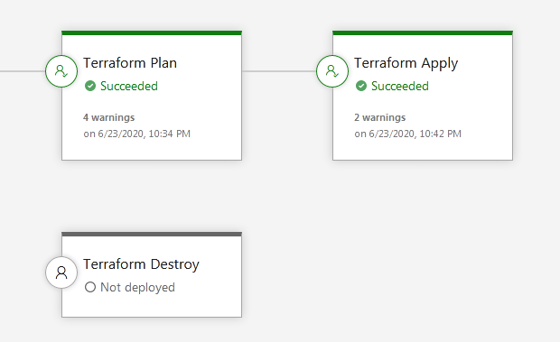 I have added a Terraform Destroy stage in this release pipeline, so that I can destroy the infrastructure after this demo. This stage needs to be triggered manually, and requires approval.