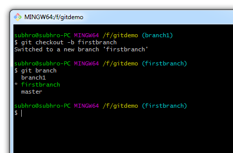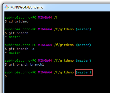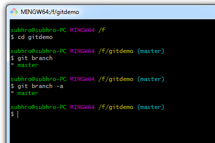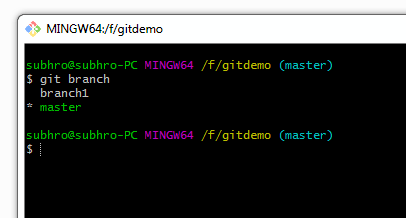 After creating the branch, run git branch again — you’ll now see both branches listed, with the asterisk indicating the current one.